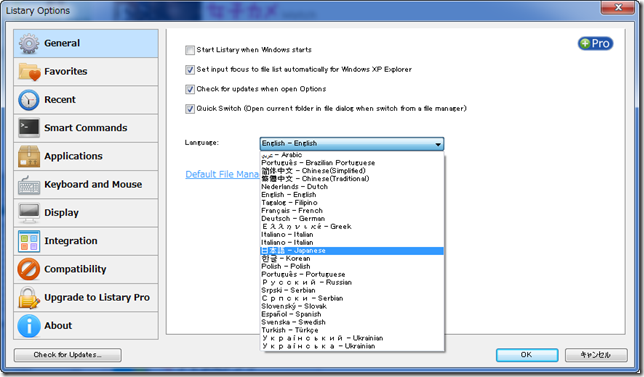日本語化はOptions->GeneralからLanguageを選択して日本語を選べばOK。